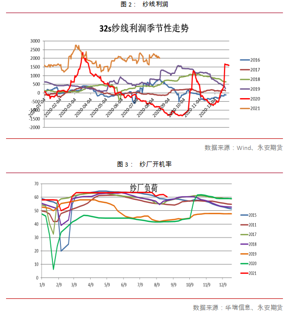1、產(chǎn)業(yè)利好的直觀表現(xiàn):紡紗利潤高及開機率高