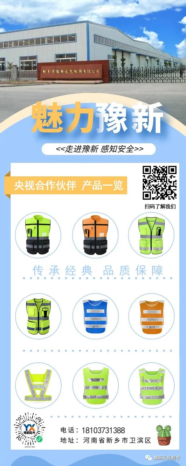 作為擁有數(shù)十年生產(chǎn)銷售經(jīng)驗(yàn)的反光馬甲廠家,擁有多臺(tái)大型自動(dòng)化生產(chǎn)設(shè)備,流水線生產(chǎn),常規(guī)款當(dāng)天發(fā),定制款高效率出貨,在新老客戶中贏得廣泛好評(píng),2020年度當(dāng)選為中國(guó)反光衣行業(yè)十大領(lǐng)航企業(yè),并成為2020年度中國(guó)消費(fèi)者滿意企業(yè),我們心懷感激,砥礪前行,2021年與央視建立合作關(guān)系,擴(kuò)大了“豫新反光”的品牌效應(yīng),未來我們將繼續(xù)奉行“客戶至上、質(zhì)量與服務(wù)第一的經(jīng)營(yíng)理念,不斷創(chuàng)新品牌產(chǎn)品,更好的為客戶服務(wù)!
